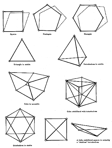 609.01 Any polygon with more than three sides is unstable. Only the triangle is inherently stable. Any polyhedron bounded by polygonal faces with more than three sides is unstable. Only polyhedra bounded by triangular faces are inherently stable.