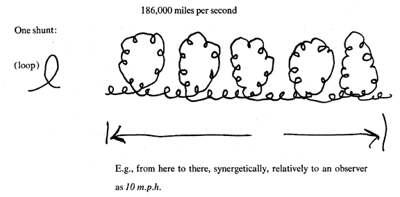 Synergetics discloses that the apparently different velocities, or rates of acceleration, ascribed by humans to environmental events are optical aberrations. The seemingly different velocities are a plurality of angularly precessed—or shunted—energy- action systems regeneratively operated in respect to other systems. Velocity is always 186,000 miles per second. All other relative motion patterns are the result of remotely observed, angularly precessed, 186,000 m.p.s., energy-action shunting. Angularly precessed shunting may divert omnidirectional energy into focused (angularly shunted) actions and reactions of either radial or circumferential patterns, or both.