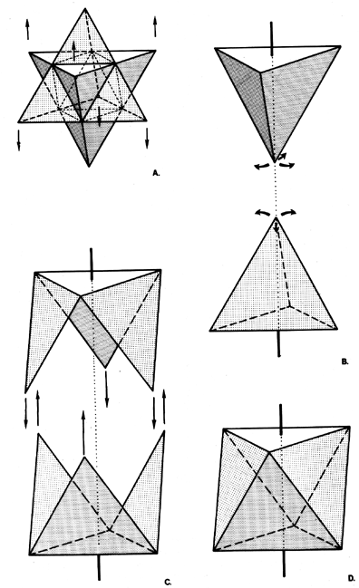 Fig 938.15 Two Tetrahedra Open Three Petal Faces and Precess to Rejoin as Octahedron.