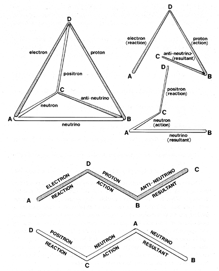 As we enter the last quarter of the 20th century, it is recognized in quantum mechanics and astrophysics that there could never have existed the traditionally assumed, a priori universal chaos, a chaos from which it was also assumed that Universe had escaped only by the workings of chance and the long-odds-against mathematical probability of a sequence of myriad-illions of coincidences, which altogether produced a universal complex of orderly evolutionary events. This nonsense was forsaken by the astrophysicists only a score of years ago, and only because science has learned in the last few decades that both the proton and the neutron always and only coexist in a most orderly interrelationship. They do not have the same mass, and yet the one can be transformed into the other by employing both of their respective two energy side effects; i.e., those of both the proton and the neutron. Both the proton and the neutron have their respective and unique two-angle-forming patterns of three interlinked lines, each representing their action, reaction, and resultant vectors.