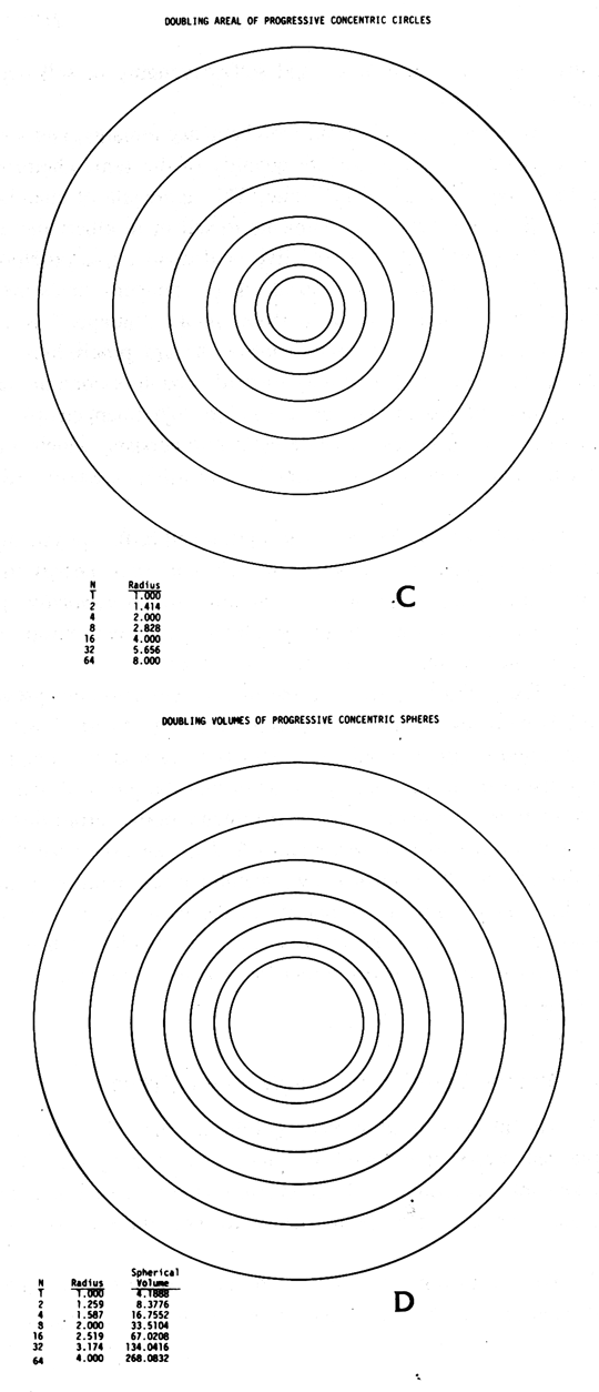 D. Doubling volumes of progressive concentric spheres.