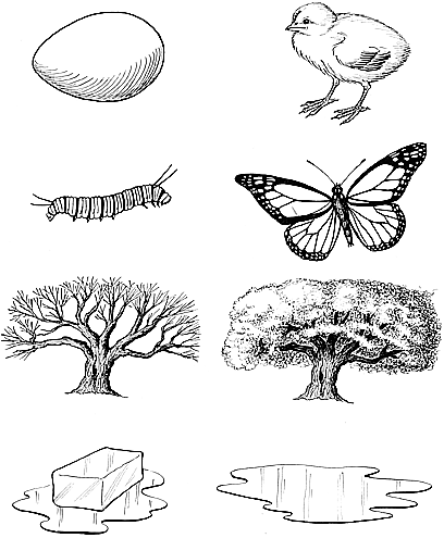 Fig. 321.01 Universe as “A Minimum of Two Pictures”: Evolution as a transformation of nonsimultaneous events: the behavior of “Universe” can only be shown with a minimum of two pictures. Unity is plural and at minimum two. (Drawings courtesy Mallory Pearce)
