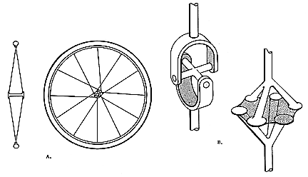B. Two-axis and three-axis “universal joints,” analogous to the wire wheel as a basic system relying on the differentiation of tension and compression for its effectiveness. These all may be considered basic tensegrity systems.