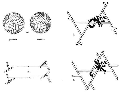 A. The two above both have six axes of symmetry. It is the patterning of the thirty diamond domains of the icosahedron’s thirty edges, the rhombic triacontahedron.